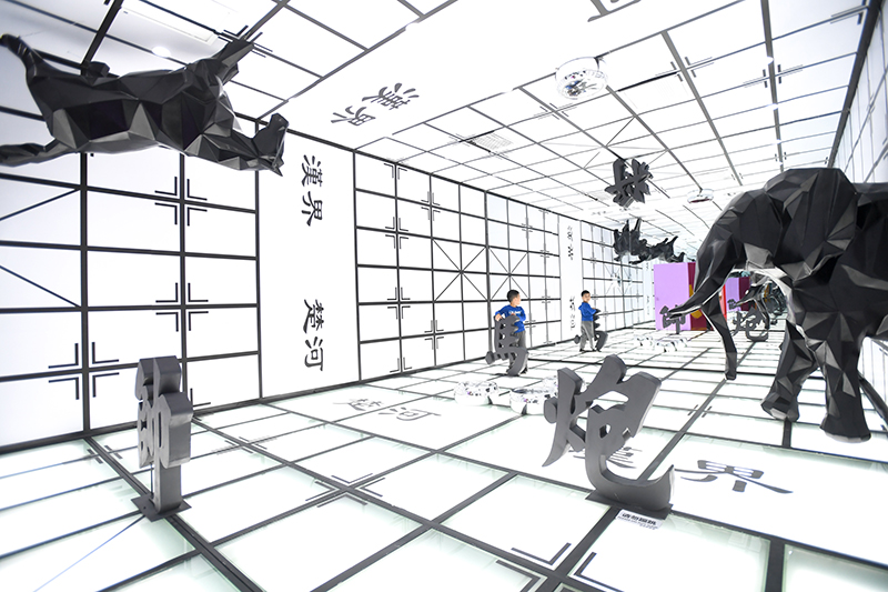 2019年9月21日,小朋友在湖南省长沙市“字在其中”汉字国潮艺术展上参观。新华社记者 陈泽国 摄